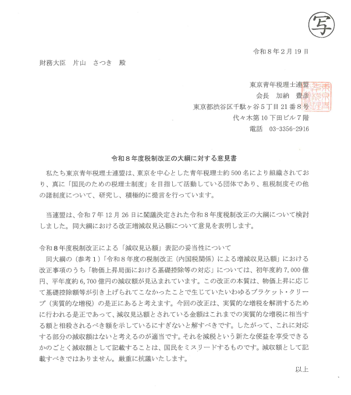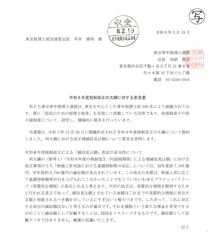令和8年度税制改正の大綱に対する意見書